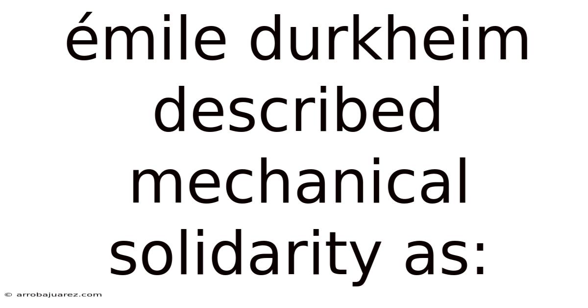 Understanding Mechanical Solidarity: Durkheim's Vision of Social Cohesion