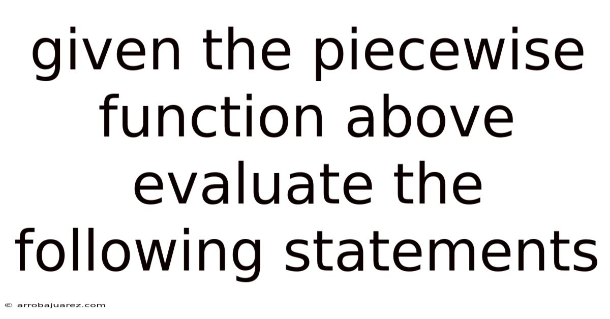 Evaluating statements involving piecewise functions requires a systematic approach that involves identifying the correct piece of the function to use based on the input value. By carefully following the steps outlined above and paying attention to the details of the function's definition, you can accurately evaluate piecewise functions and verify statements involving them. Understanding piecewise functions is essential in various fields, from mathematics and physics to engineering and computer science, making it a valuable skill for students and professionals alike. Practice with a variety of examples to reinforce your understanding and improve your accuracy And that's really what it comes down to..